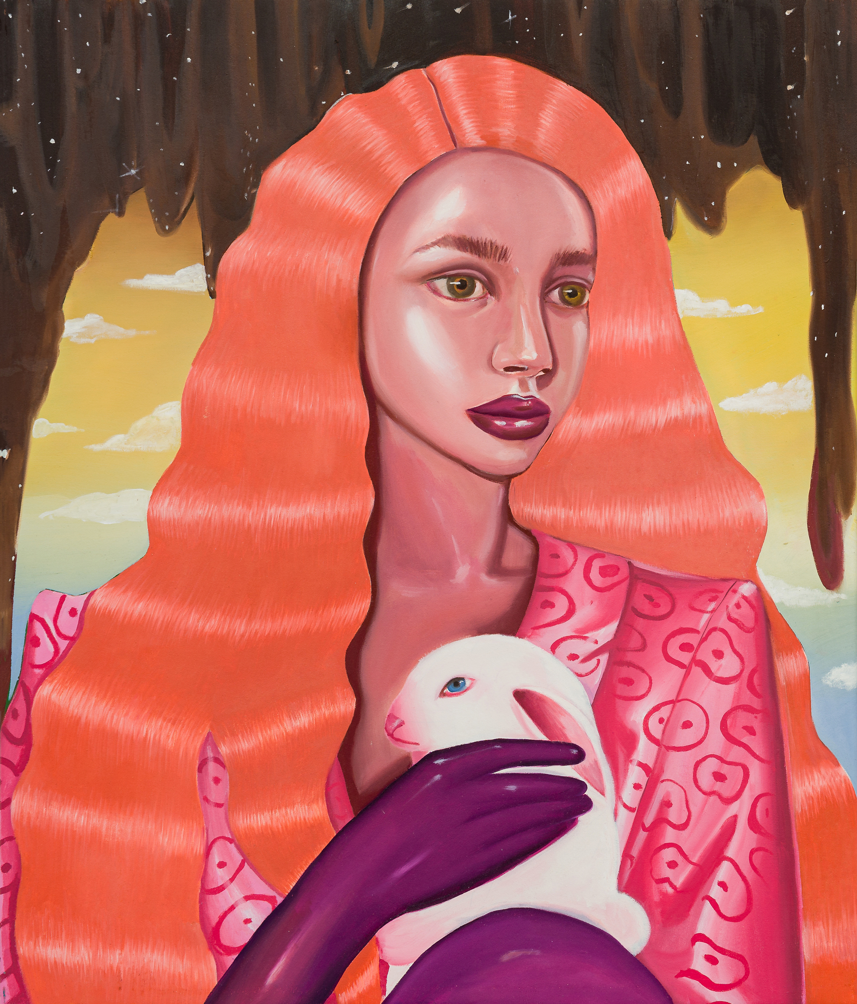Using composition rules specific to the Cartoon Glam movement, in which the human figure dominates the surface of representation, Ioana Băltan creates, through pictorial means, a guide to revisiting the memory of childhood, in the economy of which she first isolates elements with a symbolic charge – a unicorn, a lollipop, a bunny – then organizes them into visual ecosystems governed by the laws of hyper-feminine aesthetics.